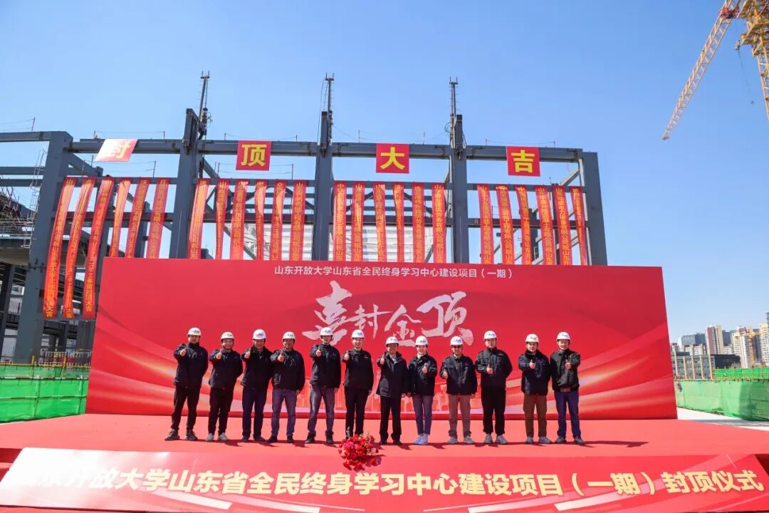 喜封金顶——山东开放大学山东省全民终身学习中心建设项目(一期)文体馆顺利封顶